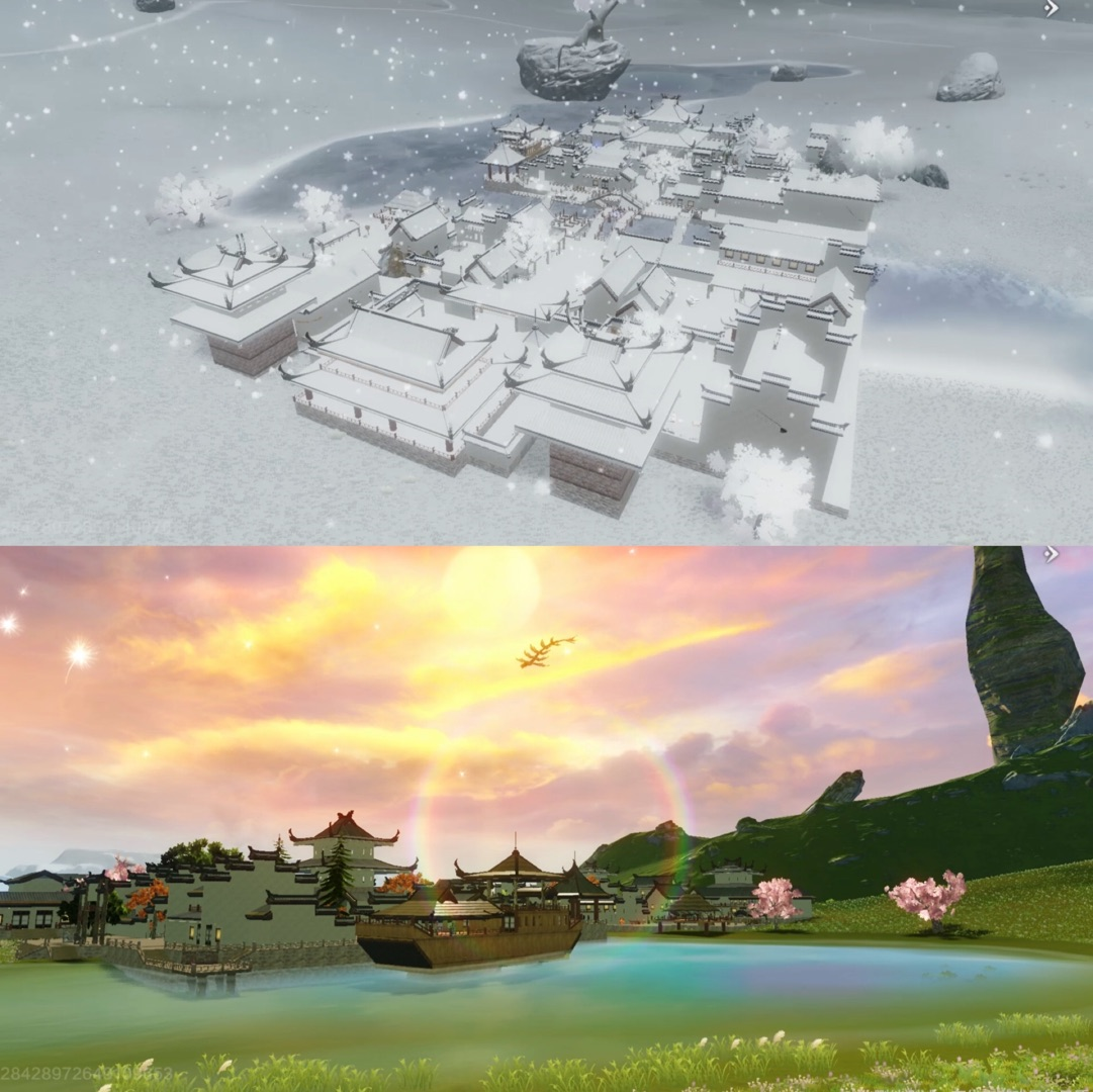 咪姐点评:本咪被暴击了!我们玩的真的是一个游戏吗?这水上航母也太有气势了吧,背后中山的火山灰正像发动机的烟,驱使航母驶向远方。咪姐期待一下,说不定哪天这座航母就有驱动器了呢~