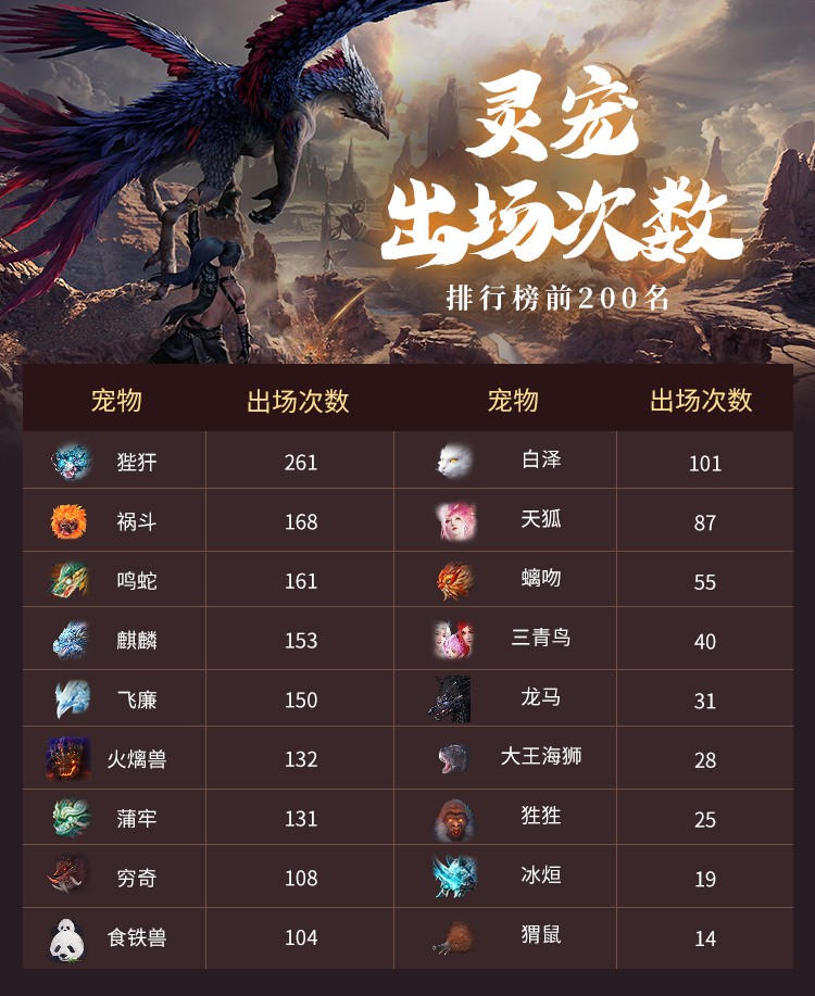飞廉、龙马、穷奇等宠物都有亮眼表现